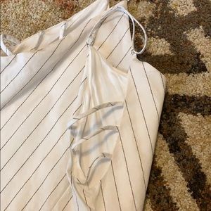 Cream Romper with Brown Stripes! Size Large, fits more like a medium! I can take a picture with it on if needed :)