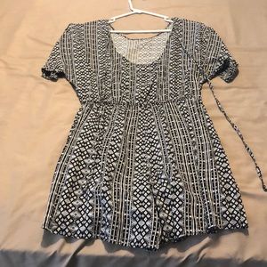 A great summer romper. Has a very cool design, short sleeve with slits in the shoulders, scoop back.