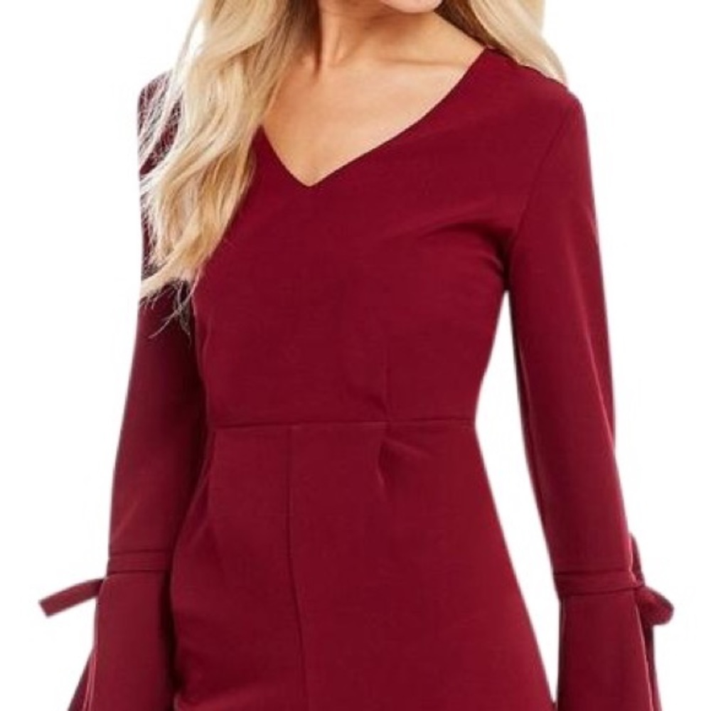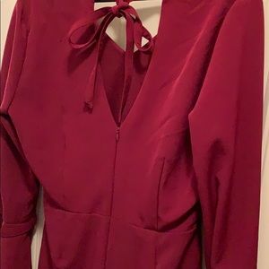 Matron long sleeve romper with sleeves that extend to a wide opening and tie at the wrist. Juniors Large. Seams for shorts are high waisted and high open back with middle tie. Very flattering and comfy wedding guest outfit!