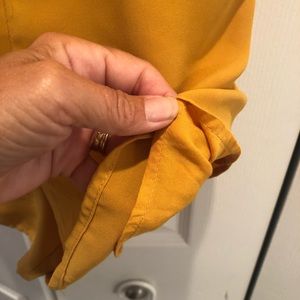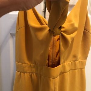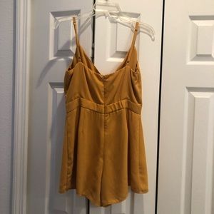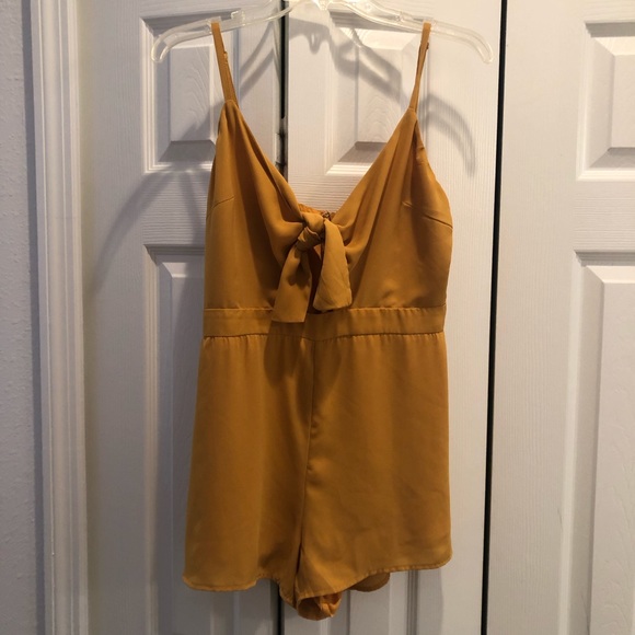 Almost new! Worn once! Mustard colored romper. Has a front tie with keyhole opening. Straps are adjustable and romper has an interior lining at the bottom. Classy and on trend!
