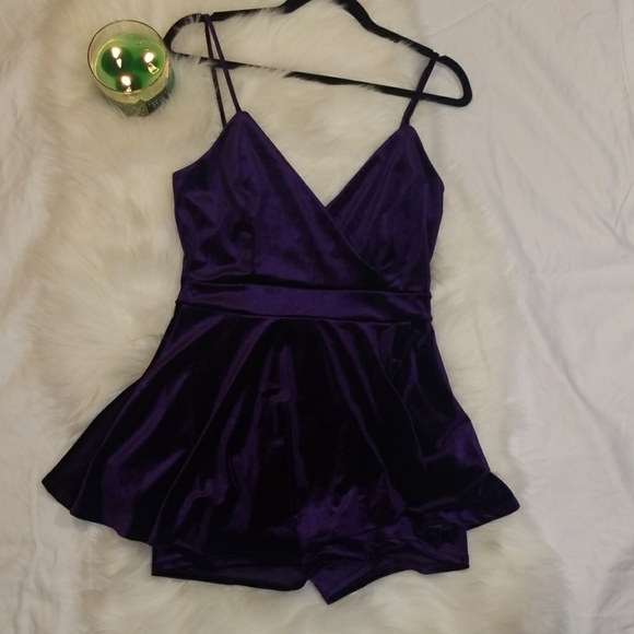 Deep purple velour spaghetti strap romper that has only been worn once. Perfect for a girl's night out!