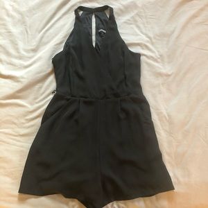Express, black short play suit. Super cute and flattering. Zip closure and button at the back of the neck. V neck. Chiffon material, fully lined.