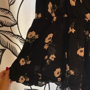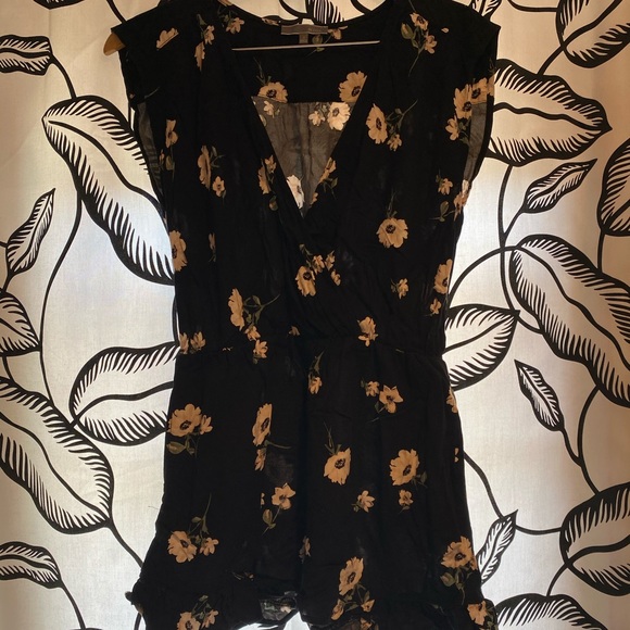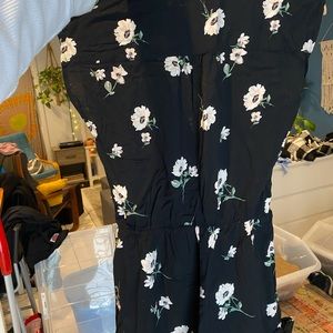 Be cool romper. Size small, but can fit XS! In worn but good condition. No signs of major wear. Black with pink flowers.