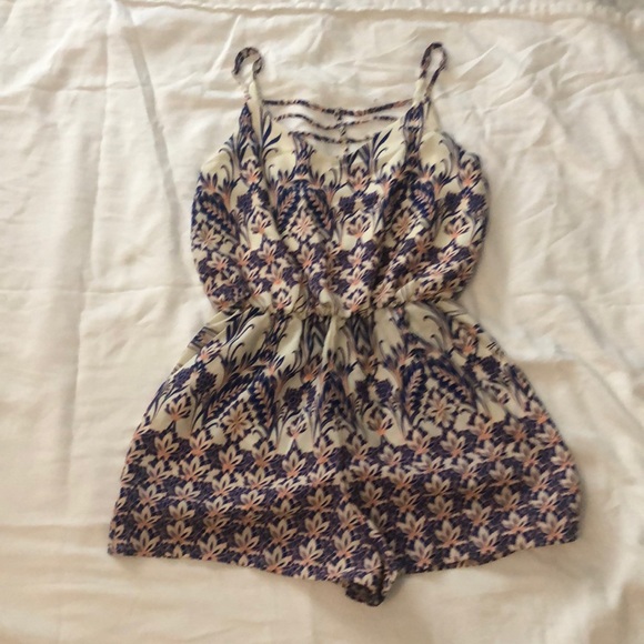 Royal blue, peach, cream spaghetti strap romper