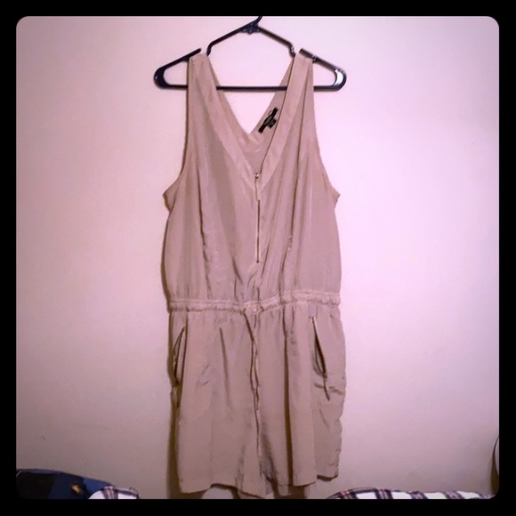 Gold satin-like sleeveless romper shorts, zip front with draw string front.