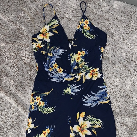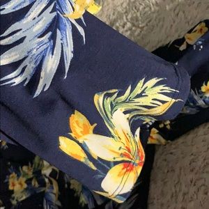 Flared out Floral romper . Never worn. Fits true to size snug fit