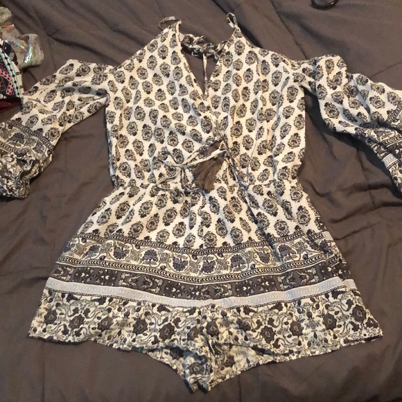 Cute tied top romper. Low cut in the front and low cut in the back