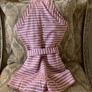 Light red and white striped romper. Brand new. Never worn. Medium.
