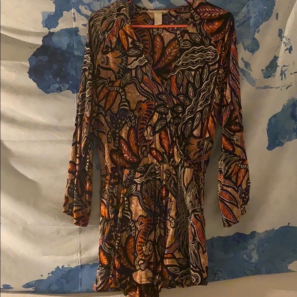 Print long sleeve romper with pockets