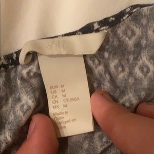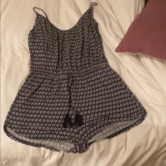 A H&M Romper that has a navy blue and white pattern in perfect condition very comfy and semi worn