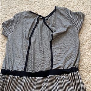 Never worn- black and white striped romper, open back.