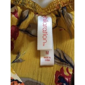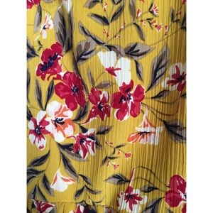 Gorgeous floral mustard romper with pockets! Cap sleeves can be worn on or off the shoulder, straps are adjustable. Only worn once! Women’s size MEDIUM