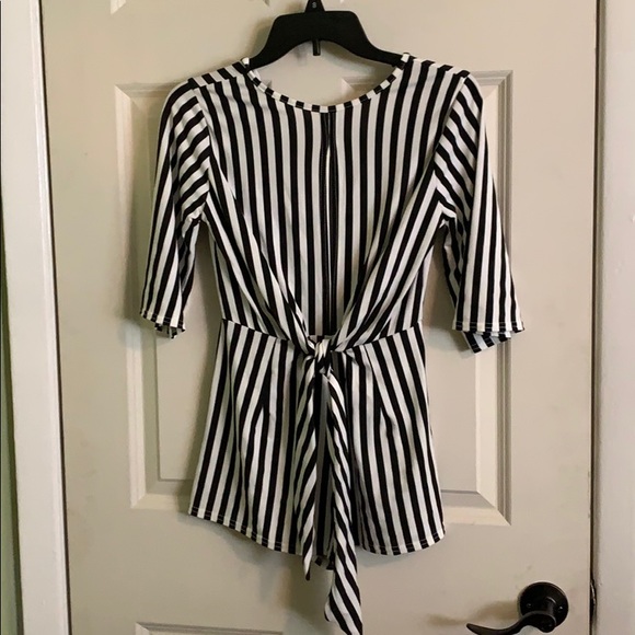 Pinstripe romper with key hole slit and front tie