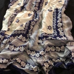 Blue and white float material has flowers for the parent with a open back and it has pockets!