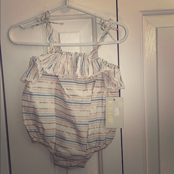 Size 6-9 month multicolored striped romper