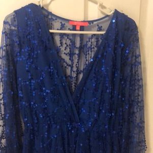 Blue sparkled romper , short with see through back