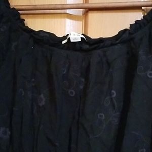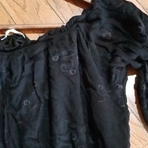 Black romper size large can be worn on or off shoulder has dark gray embroidered accents