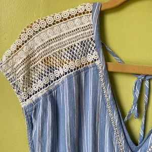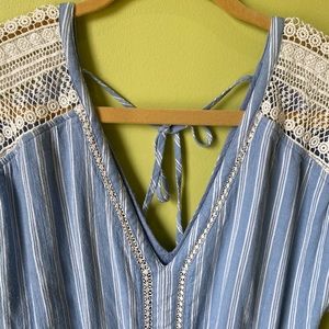 Blue and white striped romper
