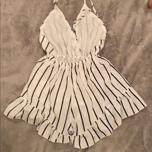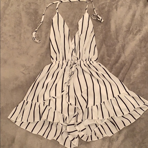 This is a blue and white striped romper from romwe