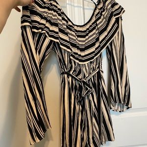 Very cute romper, Black and Tan. Off the shoulder with long sleeves. Never worn
