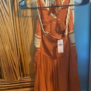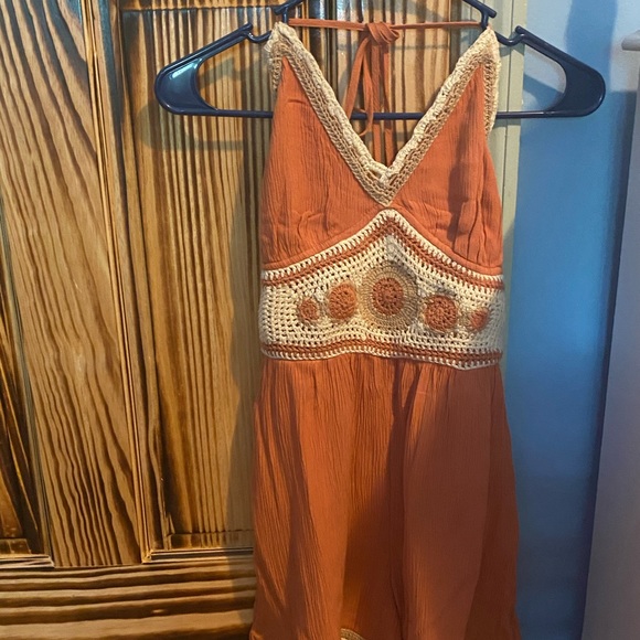 Orange and cream colored romper with crochet design. This is brand new size small from American Eagle outfitters.