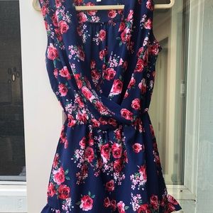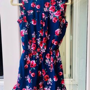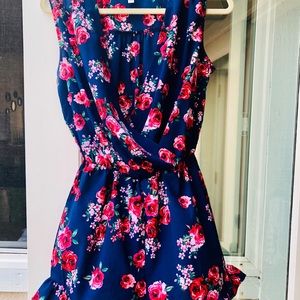 Gorgeous Romper with bright red roses , very comfortable and a light soft touch to the skin material .