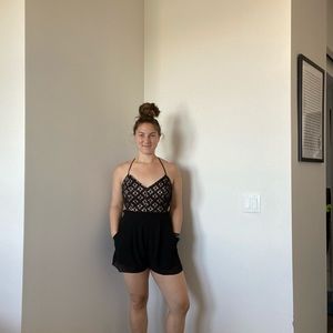Open back Black romper with detailing at top