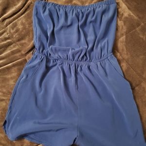 Sleeveless blue romper with pockets