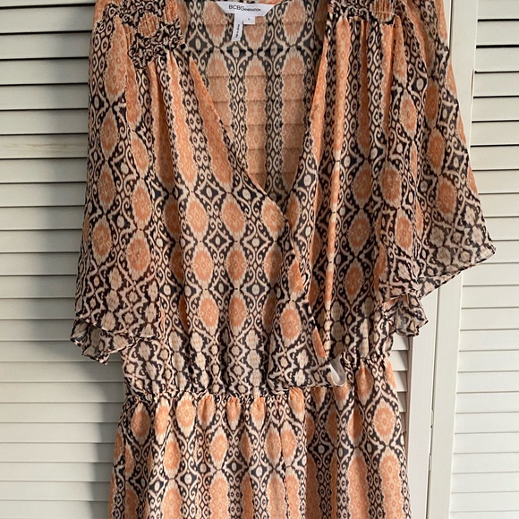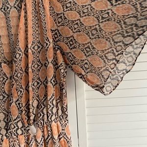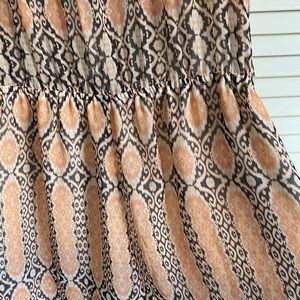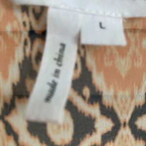 Very light lined casual romper. Can dress up or down. I wore it to an evening party and received many compliments. Lined in the front. It’s a large but if you are from a 12 to 14 it will fit perfect.