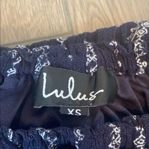 A navy blue lulus romper.