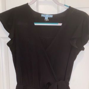 Black boutique romper with ruffled cap sleeves (never worn)