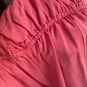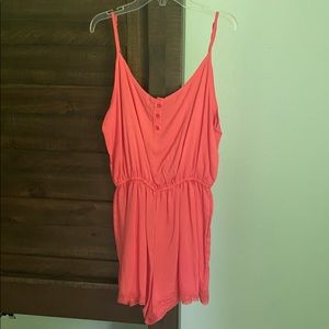 NWOT romper is like a coral color, the second pic I think is the best. The three buttons are functional and the straps are adjustable.