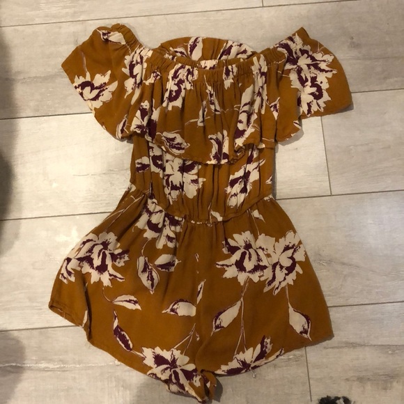 This is a cute and trendy musty yellow romper with a beautiful flower pattern.