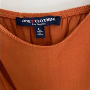 Romper, adjustable straps, adjustable front tie, pockets, new without tags.