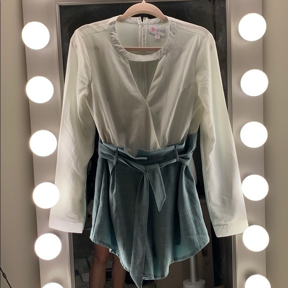 Blue green bottoms and white top. Love love love this romper