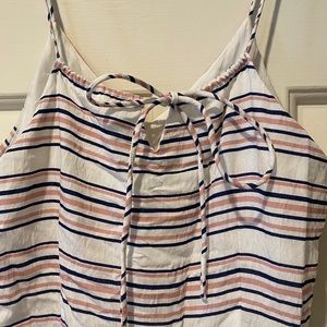 Long pant, sleeveless boutique romper. Navy/pink/white.