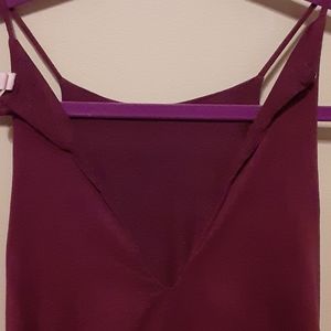 Maroon romper with button closure and base of neck, velvet material with pockets!