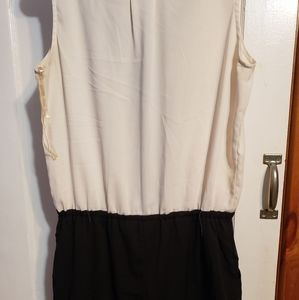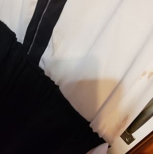 White and black shorts romper with draw string belt. Please see pictures have a few stains and have been dry cleaned