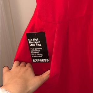 Red romper w adjustable back straps and pockets! Very flattering on the chest. Zips up on the side.never worn!
