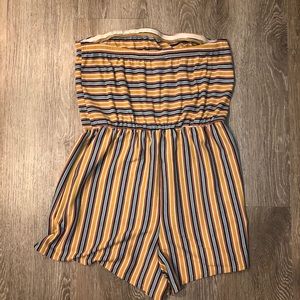 Yellow strapless romper.
