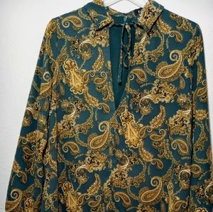 Side note: the color green that this is DID NOT come out to look like the actual color. This romper is an emerald green and gold