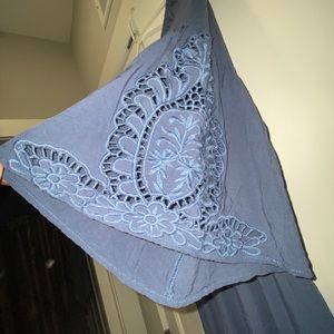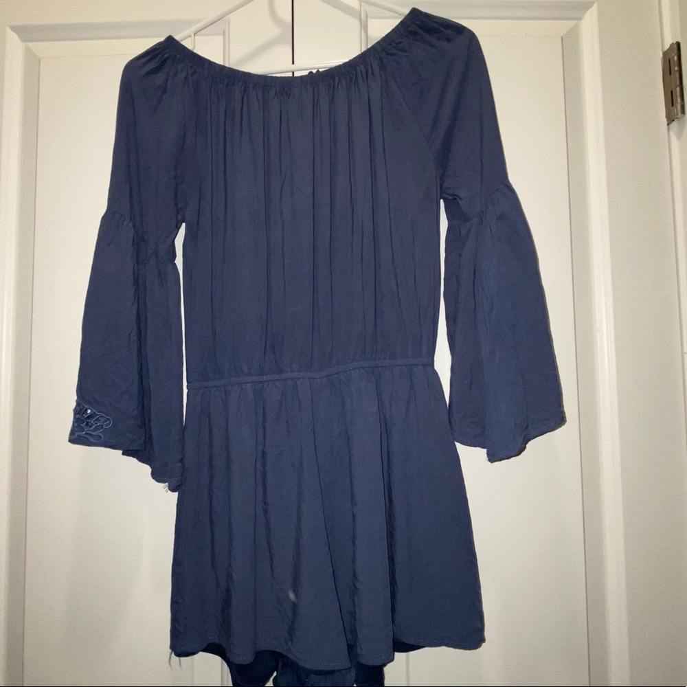 Can be off the shoulder or above. Love the design in the sleeves. It is lined from top to bottom. Bought from Francesca’s