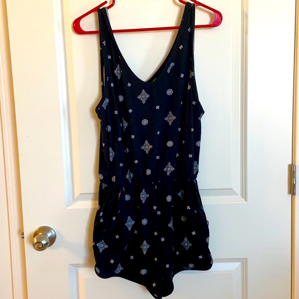 Soft and stretchy summer romper. Black with white medallion print. Worn less than 5 times. Smoke free/ pet free home.