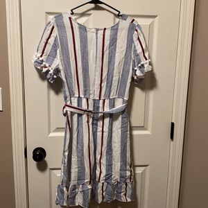 Red, white and blue romper with poms poms on sleeves. Brand new with tags. Size Large.