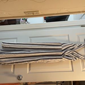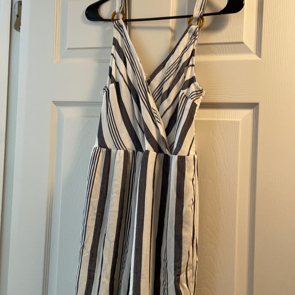Striped white and blue romper light material pocket adjustable straps