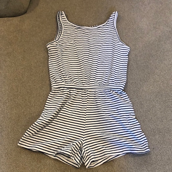 Girls romper with navy stripes