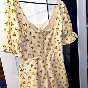 Off-white romper with cute little flowers and zip up open back! Worn one time & in great condition for summer days ☀️ ☀️ From Pink Yotto Boutique in Brooklyn NY