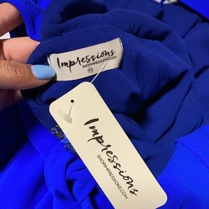 Open back and goes around the neck. Never worn, bought it for an event and didn’t wear it because I went with another outfit.