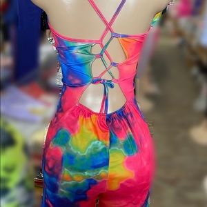 Brand new tie dye lace up back romper available in M & L
