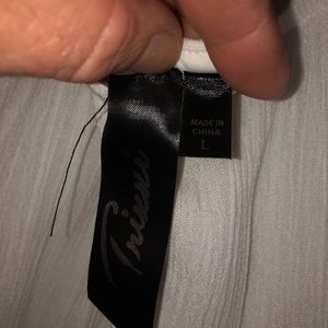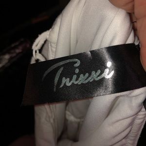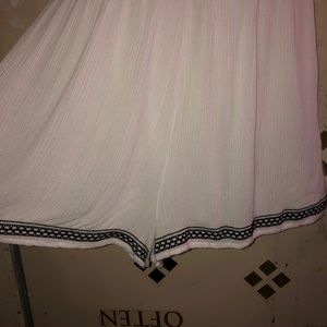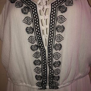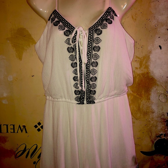 Size large white romper. Super cute & comfortable. Black trim on legs & front tie front